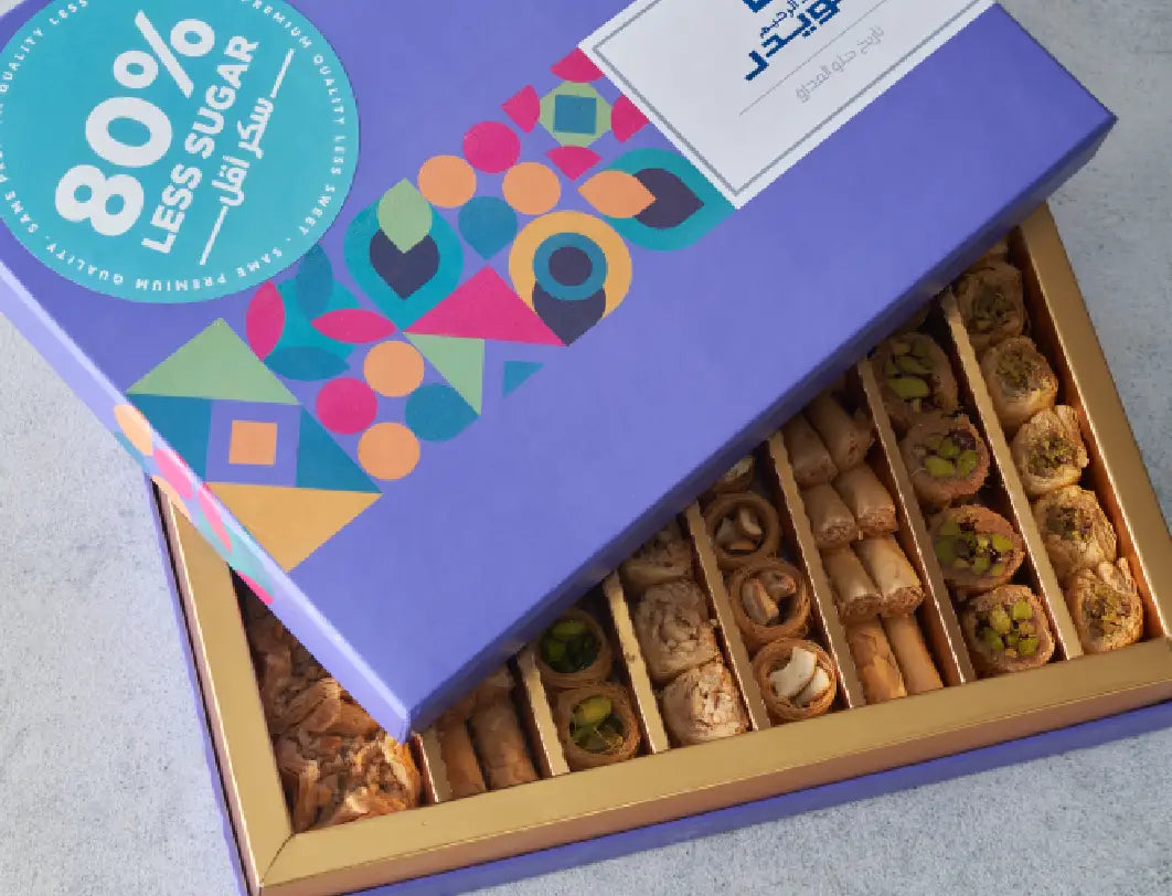حلوياتك المفضلة من عبد الرحيم قويدر معاك على مدار روتينك اليومي المختلف، فإذا كنت تتبع نظام غذائي محدد فلا داعي للقلق لأنك مازلت تستطيع الاستمتاع بحلويات عبد الرحيم قويدر الشرقية اللذيذة من خلال بوكس الشرقي لايت هو يجمع أكثر من نوع شرقي شهي ولكن بنسبة سكر أقل 80%.